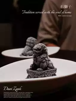Black sesame ice cream in the shape of a stone lion