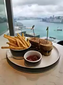 Belonging to the hotel's fine dining restaurant, the environment is stylish and comfortable, focusing on a variety of dishes, and there is a bar offering wine. I ate here about 10 years ago and liked the view of Victoria Harbour. The restaurant selection was plentiful, reasonably priced as the portions were larger than I expected, and tasted very good. Although there is no high tea set, you can order food and drinks a la carte, the seats are spacious and comfortable. The staff is very nice, smiling and friendly, suitable for friends to come to chill or happy hour.
