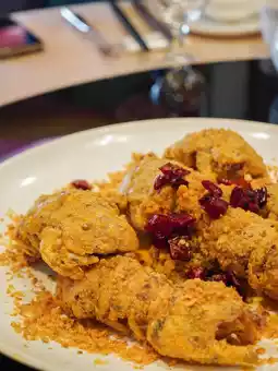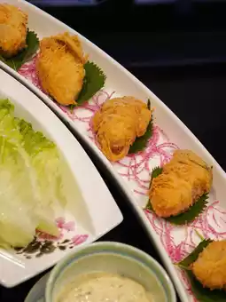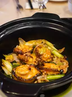 Adding coriander, mushrooms, and tofu, it creates a rich, layered flavor. ✨The crispy deep-fried oysters, wrapped in lettuce, perilla leaves, and a sour, fragrant tartar sauce, are crispy, tender, and juicy. ✨The crispy deep-fried eggplant becomes even smoother after peeling, with no residue at all—a pleasant surprise! ✨The scallion-infused abalone casserole arrives steaming hot, the abalone thick and flavorful, with a hint of scallion aroma. ✨The secret recipe zebra mantis shrimp is a must-try! The salted egg yolk coating is crispy, the shrimp is chewy, and the shrimp paste bursts with flavor. ✨Stir-fried Lotus Root with Vegetables: I personally like the crispy lotus root and mushrooms for a balanced taste. ✨Fresh Shrimp and Scallion Oil Noodles: The noodles are evenly coated with the sauce, and the shrimp balls are large and chewy. ✨Homemade Yakult Cake and Pomelo Cake: A refreshing finish, perfect for a perfect meal.