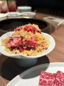 Contains thinly sliced shoulder meat, beef fillet, bare body and wagyu frosted meat, each piece of meat is quite fresh, grilled on the outside and tender inside 😌, full of taste. Especially the wagyu frosted meat, the oil is evenly distributed, melts in your mouth, it is really intoxicating🤤.