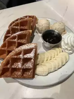 The must-try dessert is the "Sunset in Paris"—banana chocolate waffles with ice cream. The warm waffles meet the cold ice cream, creating a perfect blend of hot and cold. 🤪😬