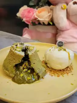 💚Pistachio Hearts with Vanilla Ice Cream: This dessert is super recommended, the melted heart is extremely rich in pistachio flavor.