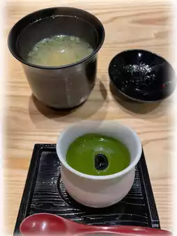 Uji matcha milk jelly, homemade by the chef, the texture of the milk jelly is soft and smooth, the milk taste is not greasy, and the matcha is not bitter.