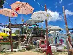 This is one of the most beautiful and mysterious photo spots in Peng Chau - the former cowhide factory has become a Grade III listed building in 2010! Residents spent 7 years, upcycle old chairs, wood, tires into colorful art installations - wow! It's really cool, deserted aesthetic Chok burst ~ absolutely!