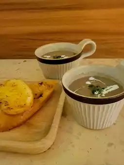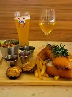 We ordered a suckling pig beer set, $498 for 2 is really cheap, including Spanish roast suckling pig🐖 with 🧀🦀 cheese crab meat baked brown mushrooms🍄 + a main course, also includes soup, garlic bread, dessert, drink (you can choose 1664 Draft Beer🍻/House White🥂/House Red🍷).