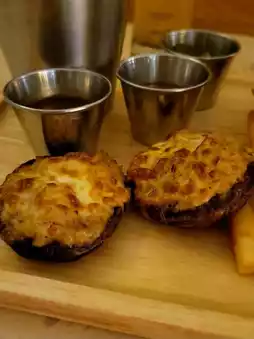 The Spanish roast suckling pig is really good, the meal originally included 1/4 but we upgraded to 1/2, the crust is very crispy and delicious 😍, very large portion! The meat is quite tender, and it tastes good with the sauce! 2 large brown mushrooms are very full and full of moisture! Stuffed with lots of cheese crab meat 🧀🦀, it tastes quite good!