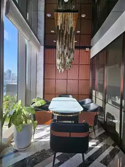 This rooftop bar, located in the new Kai Tak hotel, offers panoramic views of Kai Tak, the sports arena, and the stadium. The open and spacious environment, coupled with its upscale decor, creates a comfortable and relaxing vibe. The bartender serves a variety of drinks, and the staff are very friendly. The prices are reasonable, and it would be even better with happy hour deals. It's an ideal spot for friends and couples to unwind. Although seating is limited, it’s definitely worth a visit.