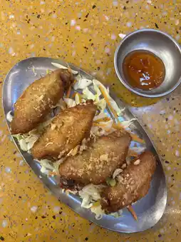 - Crispy on the outside and springy on the inside, paired with a sweet and sour plum sauce to whet your appetite.