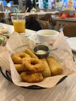 I chose the squid rings and fried fish fingers, freshly fried and hot, and the portion was plentiful.
