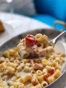 Lobster, garlic eel olive oil sauce, Tubetti small tube noodles fried small squid