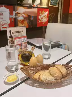The bread basket 🥖 has garlic bread 🧄 and sesame bread 🥯 both taste very delicious 🤤 you can mix your own butter 🧈 olive oil 🫒 and red wine vinegar 🍷