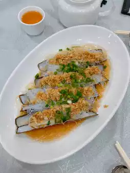 Steamed Razor Clams with Garlic and Vermicelli (4 pieces) 🐚 Each razor clam is large and meaty 👍🏻. The clam meat is fresh, sweet, and delightfully chewy 😆. Paired with a generous bed of garlic and vermicelli 🧄🍜, the vermicelli absorbs all the clam's essence 🤭, making it irresistibly flavorful 😋.
