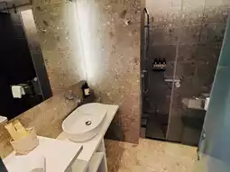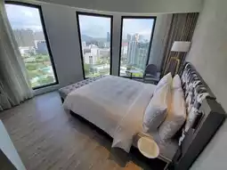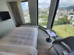 The hotel room has floor-to-ceiling glass windows, facing a large green view, coupled with the particularly high ceiling, which makes the sense of space stronger, the whole room feels very comfortable.