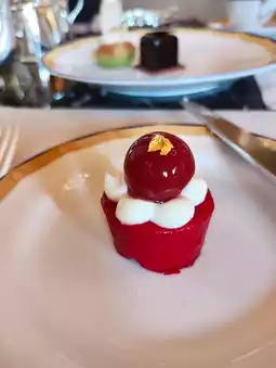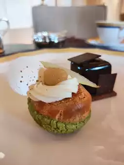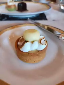 The sweet treats included 🍋 lemon meringue tart, 🟥 raspberry cake, 🟢 pistachio mousse, and 🍫 chocolate hazelnut crunch. The first two were relatively more enjoyable.