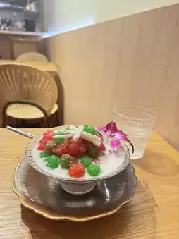 For dessert, the icy water chestnuts in coconut milk were refreshing and unique, with a red and green color scheme. They were both chewy and had a coconut flavor.
