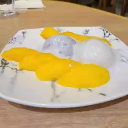 There are purple glutinous rice and white glutinous rice, smooth and crunchy, mango super new sweet, then drizzled with coconut milk, unbeatable.