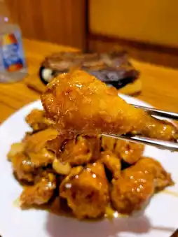 The fried chicken is crispy on the outside and tender on the inside, remaining juicy even after frying. The honey and garlic flavors are rich and perfectly blended, making it top-notch fried chicken 😋.
