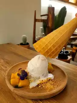 This place focuses on new-style Thai cuisine😍, the food is quite creative and attractive. I especially like the Northern Thai Crabmeat Golden Soup Oolong Noodles😍, the udon is delicious with the Northern Thai soup! Also, the mango glutinous rice donuts were interesting and the ice cream inside was quite good!