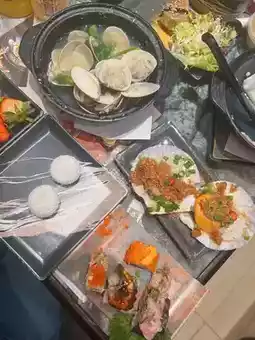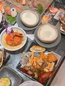 The buffet area 🍽️ has snails, mussels, shrimp 🦐 fruits 🍓🍉🍈 smoked salmon, Spanish sausage 🇪🇸 The best thing is that there are plenty of durian puree to eat🤩