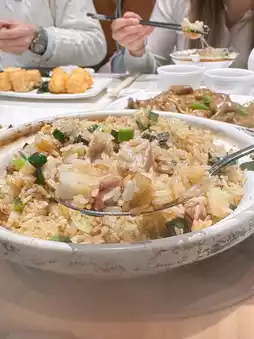 Fried Rice with Taro🍚 À la carte $128💰 - Made with taro, scallions, egg shreds🍳, and pork fat🐖. The taro is soft and creamy🤤, and the fried rice is aromatic and flavorful💯.