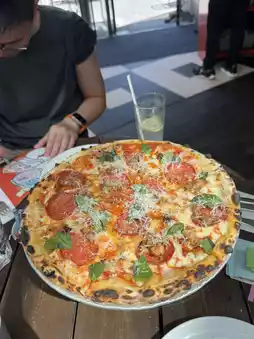 The New York pizza (12 inches): A delicious experience that is salty, slightly sour, chewy and balanced and harmonious. The crust is thin and resilient, not crispy like a biscuit, but slightly crispy on the outside and soft and chewy on the inside. You need to “fold” it when you eat it, using homemade fermented sourdough bread, which is very fluffy and tough. Due to the use of high-gluten flour and the dough that has been fermented for a long time at low temperatures, the crust has a light yeasty acidity and a strong wheat aroma. The natural fresh and sour taste of tomatoes is dominant, the saltiness is obvious, and the breath of vanilla dots it, which is very appetizing.