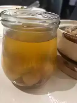 First, I ordered **Braised Pork with Sea Coconut and Pear**. The broth was simmered for six hours, and the sweetness of the sea coconut and the fragrance of the pear were perfectly balanced. The savory flavor of the pork added a rich layer of flavor to the broth. This bowl of soup is not only delicious, but also has lung-moistening and cough-relieving properties, making it perfect for those seeking nourishment.