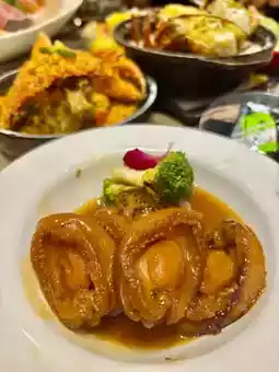 The delicacies are truly captivating. The **Braised Abalone with Flower Mushrooms** is incredibly tender and irresistible. The **Braised Fish Maw in Golden Broth** is rich and flavorful, delivering a luxurious experience with every bite. It's truly a feast for the senses!