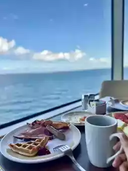 During the two-and-a-half days of cruising aboard the Ocean Spectrum, life felt exceptionally relaxed. Mornings were free from the disturbance of alarms, allowing for a peaceful, natural wake-up. Walking into the panoramic sea-view restaurant, gazing at the boundless ocean, sipping a cup of black tea paired with sweet and fluffy pancakes—it felt as though time had slowed down. In such an atmosphere, leisurely planning the day's activities became a delightful enjoyment.