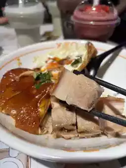 This double dish is definitely the best choice for barbecue taste lovers! The crispy skin of the roast pork belly makes a crisp sound when you bite into it. The meat is delicious and the oil is moderate. It is simply intoxicating. The soy sauce chicken is a classic of classics, with smooth and tender meat and fragrant sauce. The addition of three eggs makes the whole dish richer in color and also adds egg flavor for a better layered taste.
