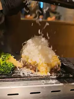 "Rou Rou Da Mi," always known for its long lines, has recently opened in Kowloon Bay. The restaurant features counter seating, allowing you to watch the chef grilling burgers up close. The aroma is incredibly tempting!