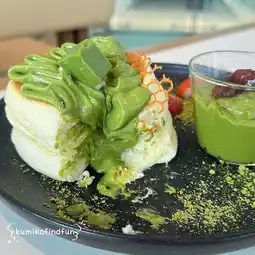 The green tea flavor is rich and the pancakes are soft and shivering as soon as they are served