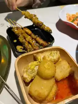 Thai satay pork skewers🍢 Grilled outside and tender inside, rich in juice, rich in satay sauce, worth a try🤤 In addition, Thai fried food is good recommend durian aroma full of fluffy durian bomb and crispy inside bomb fried shrimp cake🍤 The restaurant also offers a variety of steamed dim sum🥟 including shrimp dumplings siu mai steamed buns🥢