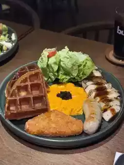 Includes hash browns, chicken chop, black truffle scrambled eggs, sausage, and salad ๐ฅ