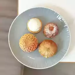 The four savory items are ready to impress! First, the curry chicken sandwich. The soft texture of the sandwich was delightful, and the fragrant, mildly spiced curry chicken filling was truly delicious.