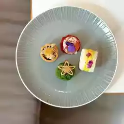 The slow-cooked scallop tart with yuzu and mango salsa is small yet exquisite! The tart base remains crispy, while the creamy scallop filling mixed with yuzu and mango salsa offers a sweet and tangy flavor that’s very appealing.