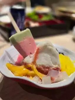 No matter how full you are, you have to leave a little space for dessert. Chocolate tarts, Thai pastries, and ice cream are must-eats. You can make your own snowflake ice.