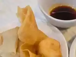 The fried wontons are extremely crispy, dipped in sweet and sour sauce, the layers are completely different