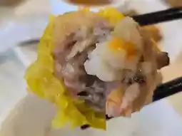 The siu-mai is big and surprising, and is garnished with mushrooms and crab seeds.