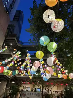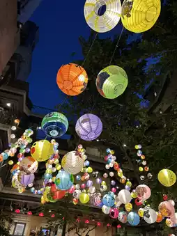 The whole street is hung with more than 800 traditional Chinese lanterns and goldfish lanterns. Once the lights are lit, the whole place instantly becomes a flowing river of light and shadow! Golden ginkgo leaves with red sea of lanterns, looking up at the warm light in the sky, old Cantonese songs playing in my ears, like walking into the retro Mid-Autumn Festival in Wong Kar-wai's movies