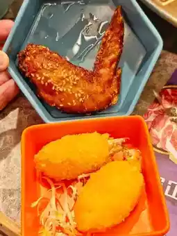 The cooked food also has 🐓 sesame chicken wings and fried crab tongs🦀, hot and delicious!