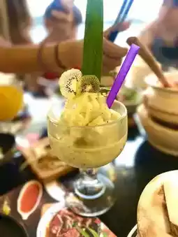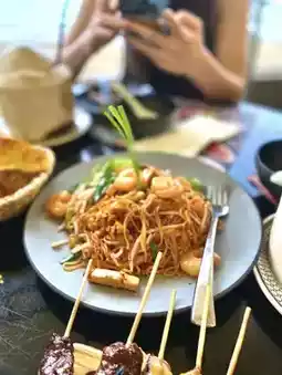 But if you say you want to eat very authentic it is not, but this price with the sea view can be worth a try 😉 Personal recommendation tom yum soup, raw shrimp, skewers, and his shakes! The smoothie was surprisingly not very sweet! His green curry is also good! But by the way, if you sit outside and there will be mosquito bites you 😂😂😂 you may have to bring a mosquito repellent