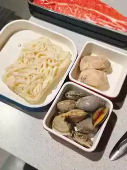B meal hot pot ingredients (2 persons) 🥢 $80 with meal 💰 The mussels are small but fresh and sweet 😋 The dumplings are filled with river shrimp, pork 🐷 wood ears, etc. 🖤 Refreshing 😆