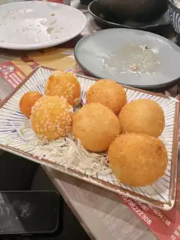 The tiger prawn tempura is fried to a golden brown ✨ Crispy on the outside and crispy on the inside 😆 Coconut melted balls filled with coconut sago Sweet 🥥