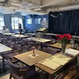 The restaurant layout is square, once you enter the door can be seen at a glance, the place is quite large, on the left hand side is the bar table, decoration dark purple and blue design, feel high-end, seating design respectively bar table, normal four-person table and sofa, to meet different customers happy number, we were arranged to sit on the sofa today, very comfortable