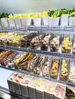 The self-service area is full of choices, and they are neatly arranged, which is pleasing to the eye. Must-try items include handmade squid rolls, shrimp rolls, eel slices, crispy catfish, refreshing belly, pork neck, pork rinds, etc., as well as various meatballs and vegetables. Goose intestines and fried fish skin are my favorites! There are really many choices of hot pot ingredients, and small portions, you can try everything, perfect for people who care.