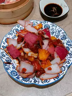 Pineapple black vinegar ribs 🦴 The ribs are coated with black vinegar 🖤, paired with pineapple 🍍 and onions 🧅, making it sweet, sour, and appetizing 🤤