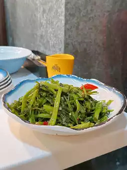 Thai-style Stir-fried Morning Glory 🥬 The morning glory is crisp 😆 with a savory, slightly spicy flavor 😛