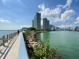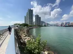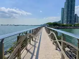 Today, we finally arrived at the Tuen Mun Promenade, known as the "Fantasy Bridge of Love," located in Tuen Mun Promenade Park in Hong Kong. Built along the shores of Butterfly Bay, the Tuen Mun Promenade is a mere 10-minute walk from the Tuen Mun Ferry Terminal. Not only do you enjoy stunning sea views, but you can also stroll along the beach, relax, and soak up the sun.