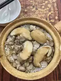 This Hong Kong specialty consists of rice cooked in a clay pot and topped with various ingredients. Add soy sauce and mix to finish, creating a delicious, savory crust. ✨