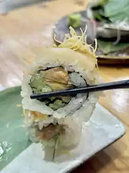 The sweet shrimp and sashimi sushi is fresh and sweet; the oily fish fillet is full of fat. Seaweed Squid Warship I didn't expect this combination to be quite special. The avocado soft shell crab hand rolls are crispy enough. Pan-fried goose liver scallop rolls are so satisfying😌